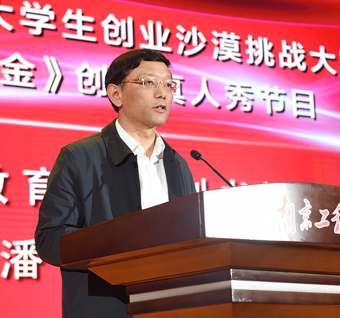 此次活动由中国创业创新发展委员会、中国下一代教育基金会、南京江宁高新园管委会和我校主办。江苏省委教育工委副书记潘漫、中国创业创新发展委员会主任李朝平、商务部中国国际贸易协会主任陈逸、中国创业创新发展委员会执行主任助理苏红艳、南京江宁高新园管委会副主任贝淑芳、中国下一代教育基金会生命阳光爱心基金常务副主任姜一萍、团中央未来网《生命阳光》频道执行总监张军、天津博爱生物医药集团副董事长刘振鹏、后大学时代教育集团创始人兼董事长江永胜,我校党委书记史国君、副院长张仰飞出席活动开幕式。
