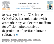 近日,我校环境凯发曹世海副教授以第一作者,凯发k8官网为第一署名单位,先后在国际权威期刊《Rare Metals》和《Journal of Rare Earths》发表两篇研究论文:Visible-light-driven photocatalysis degradation of antibiotic pollutants by La-doped CeO2 nanorods: synergy of La doping and oxygen vacancy和In-situ synthesis of Z-scheme CeO2@WO3 heterojunction with aromatic rings as electron medium for efficient photocatalytic degradation of perfluorobutane sulfonate。《Rare Metals》和《Journal of Rare Earths》均为中科院一区期刊,影响因子分别为9.6和5.2。