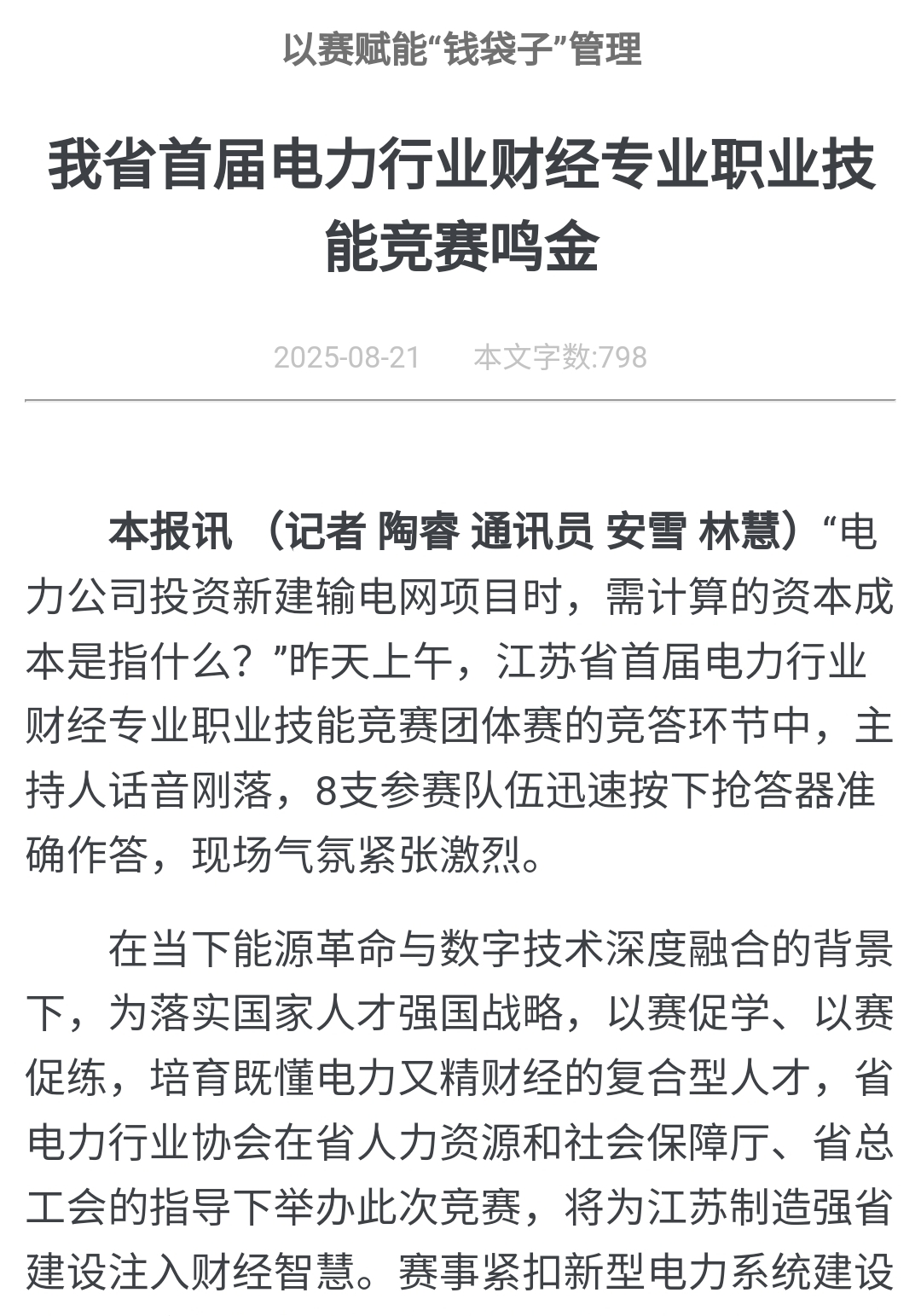《江苏工人报》:我省首届电力行业财经专业职业技能竞赛鸣金