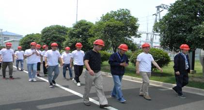 为加强与企业共建合作,进一步了解我国电气行业的发展历程,研究生处谭文轶处长带队一路向北,参观沿途电厂新能源新技术发展。7月12日,师生来到国信淮阴发电有限责任公司,在工作人员的陪同下,近距离观看了发电机组,并参观了主控室。随后座谈会上,邵文蓬董事长饱含深情地从企业创新发展历程、经营业绩、人力资源现状及取得的成绩等几方面进行了简单的介绍。为响应国家节能减排产业政策,国信淮阴发电有限公司先后拆除了老厂234兆瓦容量、计8台小机组,在原址建设两台300兆瓦级以大代小热电联产机组。淮阴发电有限公司从一个单机0.75兆瓦的纯凝发电厂到总容量680兆瓦的多元化绿色能源企业,迈上了建设大容量城市环保电厂的科学发展之路。2010年4月15日,苏北首个燃机热电项目——江苏国信淮安2×180MW级燃机热电联产工程在楚州区建淮乡正式奠基,一个集燃煤和燃气为一体的、容量超百万千瓦的多元化热电联产企业正在崛起。经过调研,师生了解了淮阴电厂建国70周年来的发展历程,感受到改革开放40周年来电力事业的日新月异,纷纷感慨老一辈电力人为电力行业做出的巨大贡献。
